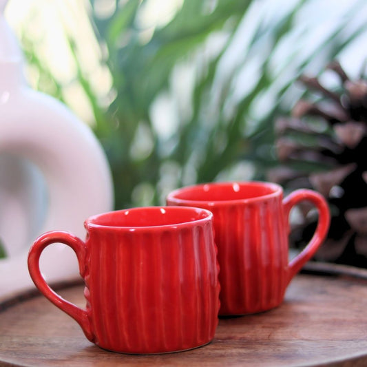 Handcrafted Ceramic Coffee Mug with Vibrant Red Textured Design Set of 2