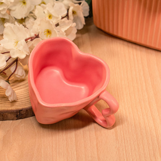 Handcrafted Pink Heart-Shaped Ceramic Mugs, Set of 1