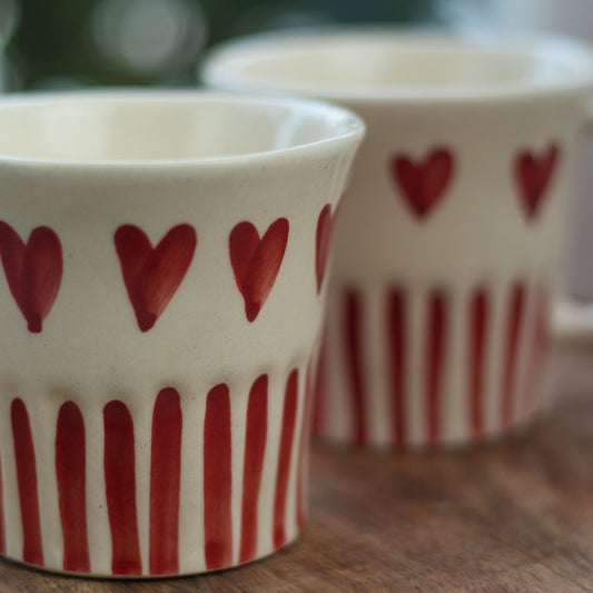 Handcrafted Ceramic Mugs with Red Heart Design, Set of 1