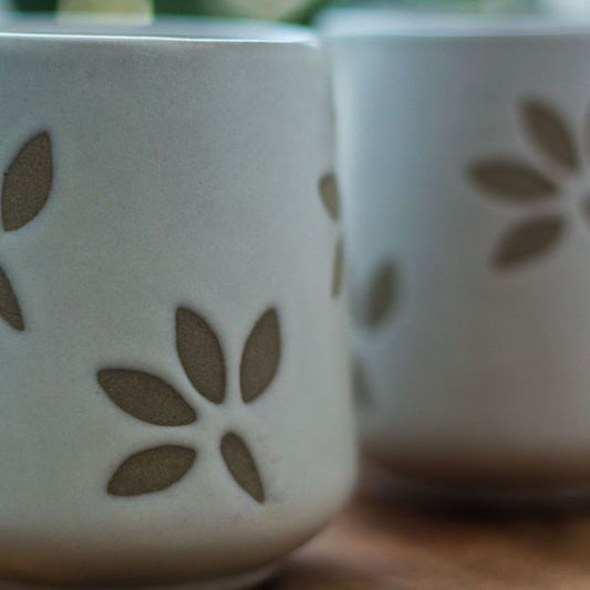Handcrafted Ceramic Mugs with Floral Cutout, Set of 2