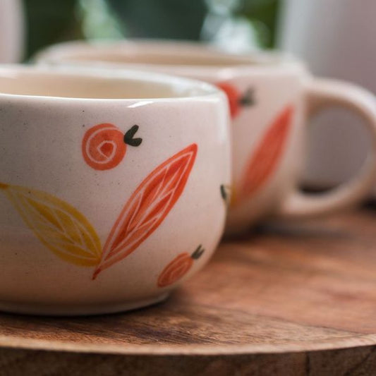 Handcrafted Ceramic cups with Orange Flower Design