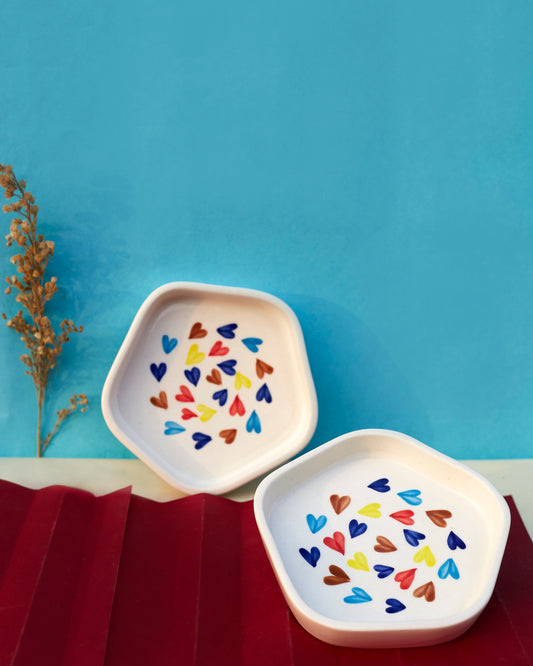 Heartfelt Elegance: Set of 2 Ceramic Heart-Painted Small Plates