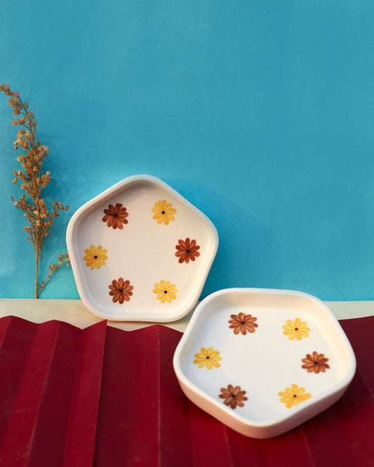 Sunny Blooms: Set of 2 Sunflower-Painted Small Plates