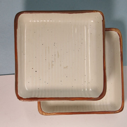 Rustic Handcrafted Square Ceramic Plates - 2 Piece Set