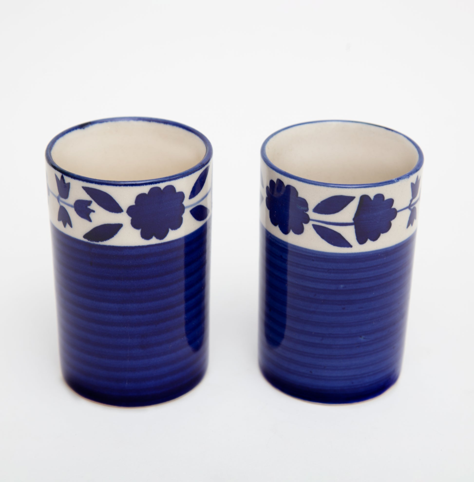 200ml Handcrafted Mughal Design Water Ceramic Glass (Set of Two)
