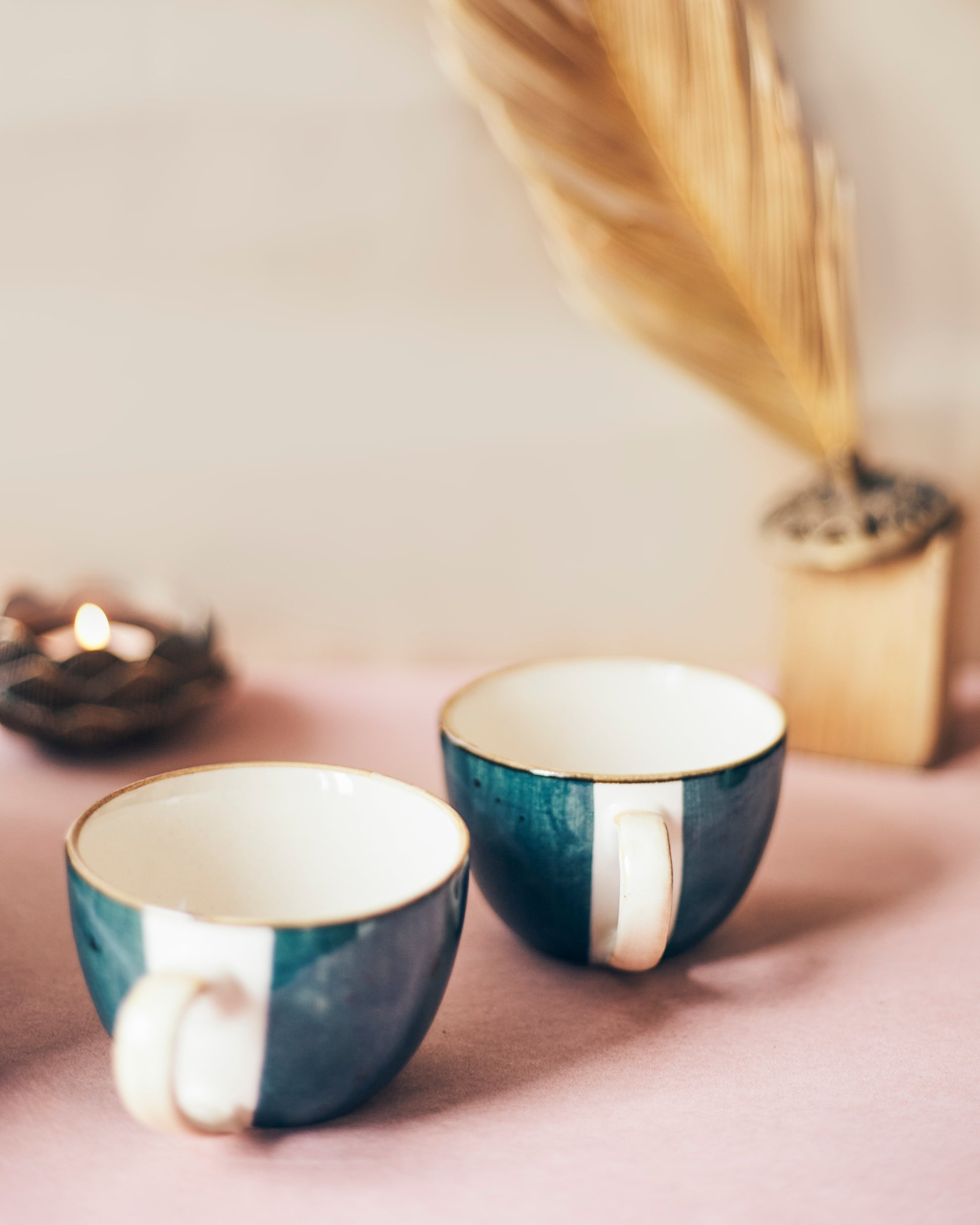Immerse yourself in the soothing charm of our 'Aqua Elegance' set featuring 2 Ceramic Aqua Colored Tea Cups. Crafted with meticulous detail, these cups boast a refreshing aqua hue, elevating your tea-drinking experience. The ceramic construction ensures durability and an elegant feel in your hands. Delight in moments of tranquility as you savor your favorite tea in these stylish cups. Share the serene elegance with a friend or enjoy a peaceful solo moment. Embrace the fusion of aesthetic appeal and functionality in each cup, making 'Aqua Elegance' an essential addition to your tea time ritual.