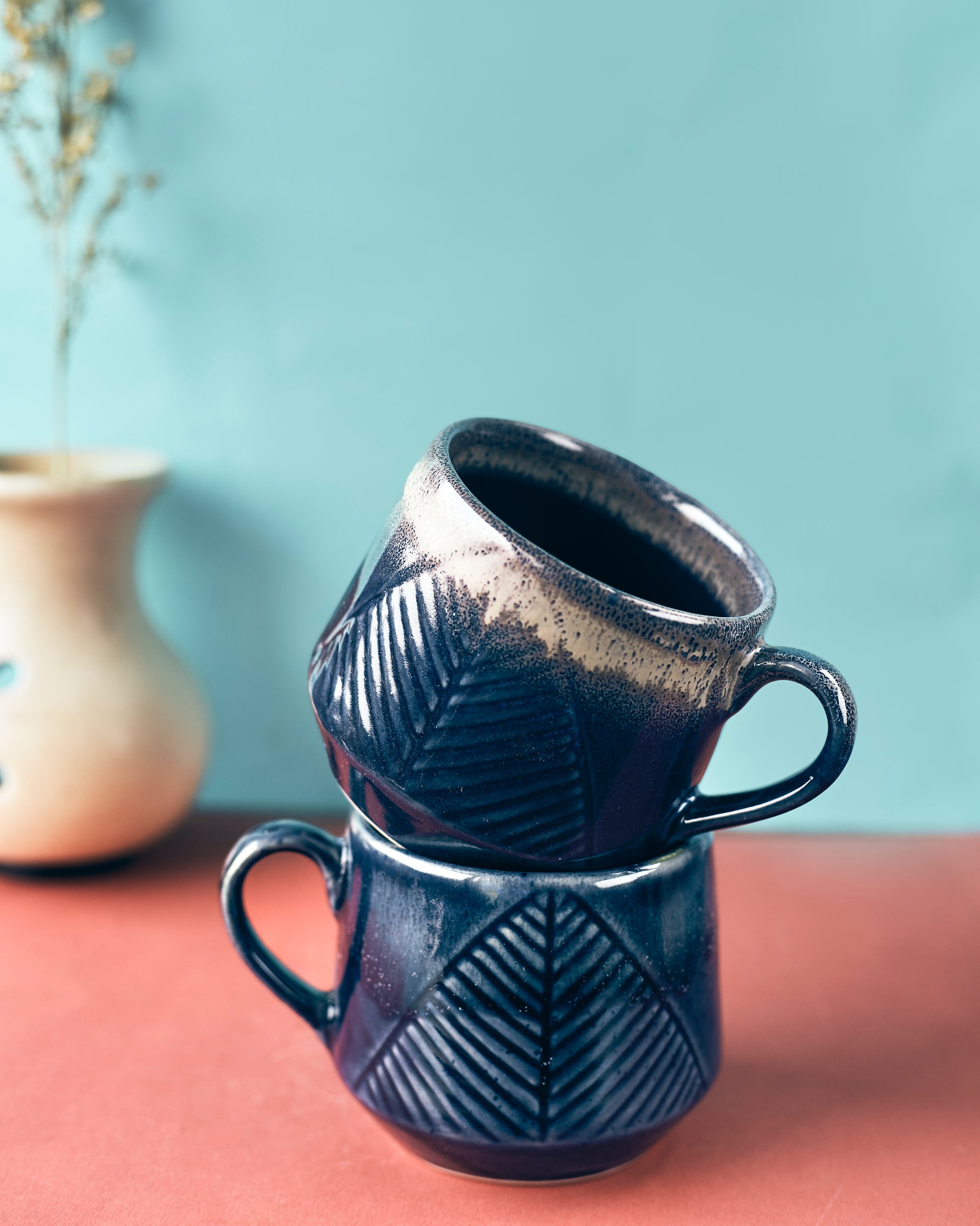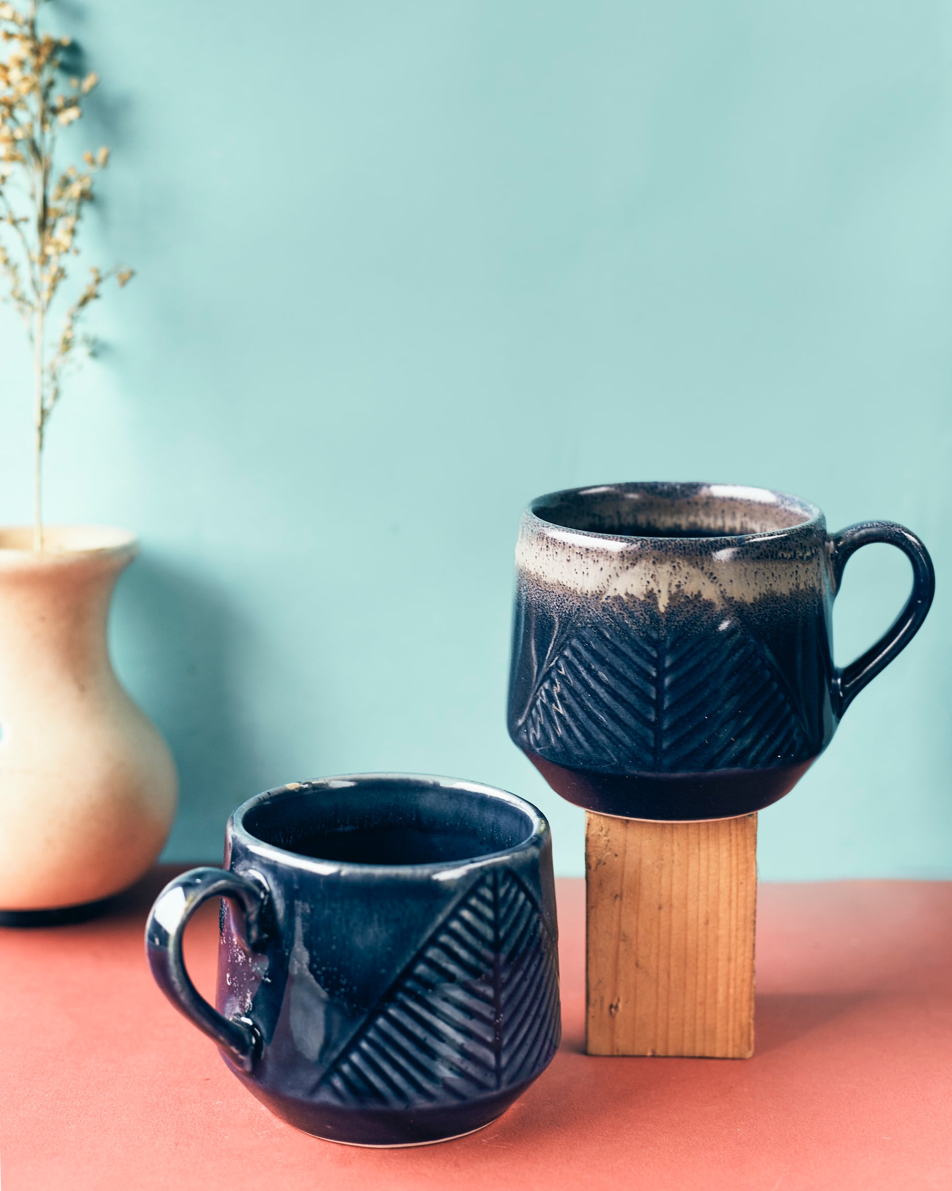 Arctic Navy Duo: Frosty Navy Blue Coffee Mugs ( Set of 2 )