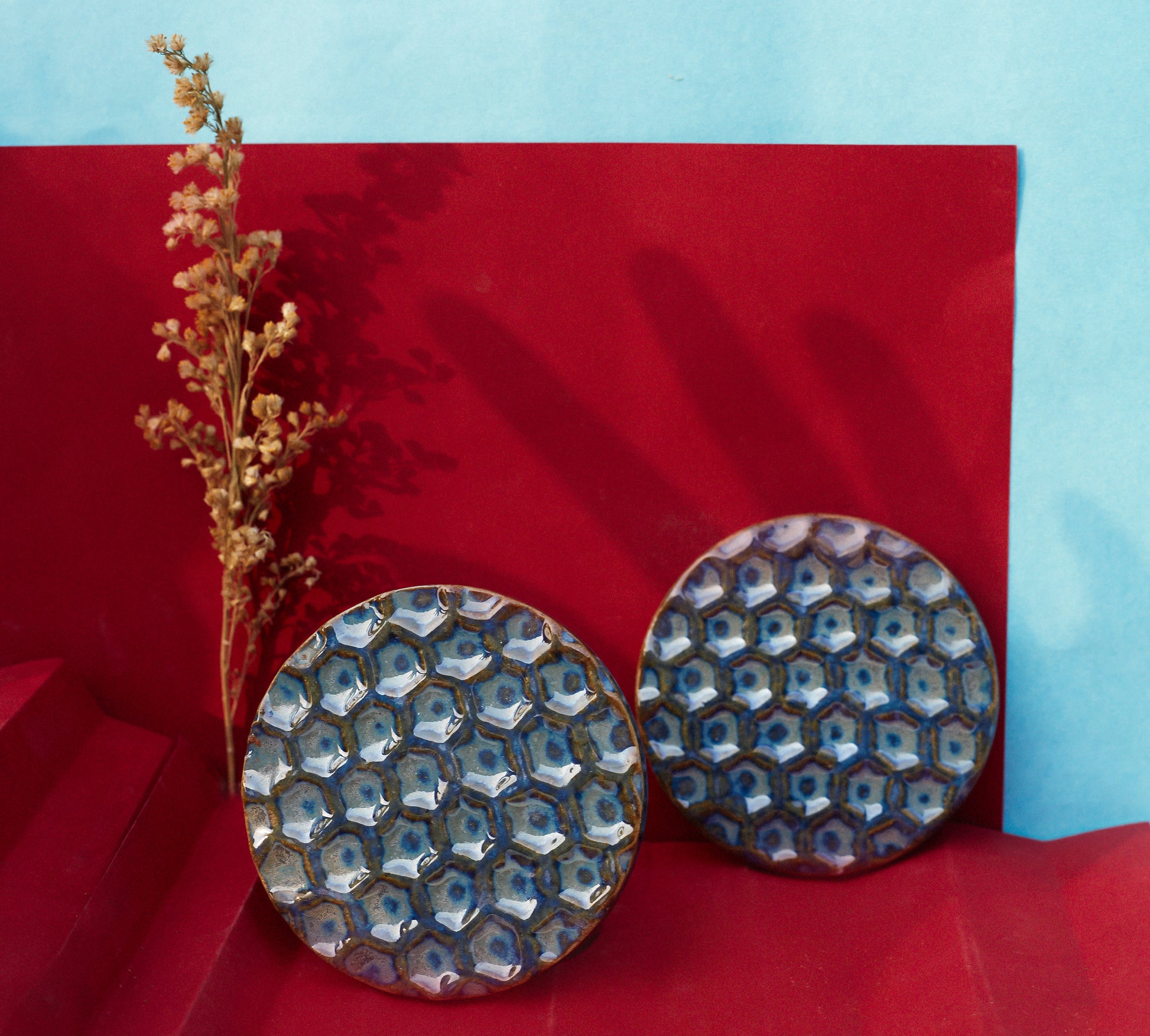 Azure Hexagons: Ceramic Blue Honeycomb Coaster (Set of 2)