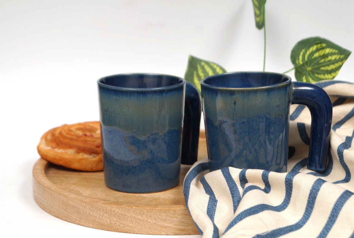 Blue Serenity: Ceramic Milk Mug Duo for Two (Set of 2)