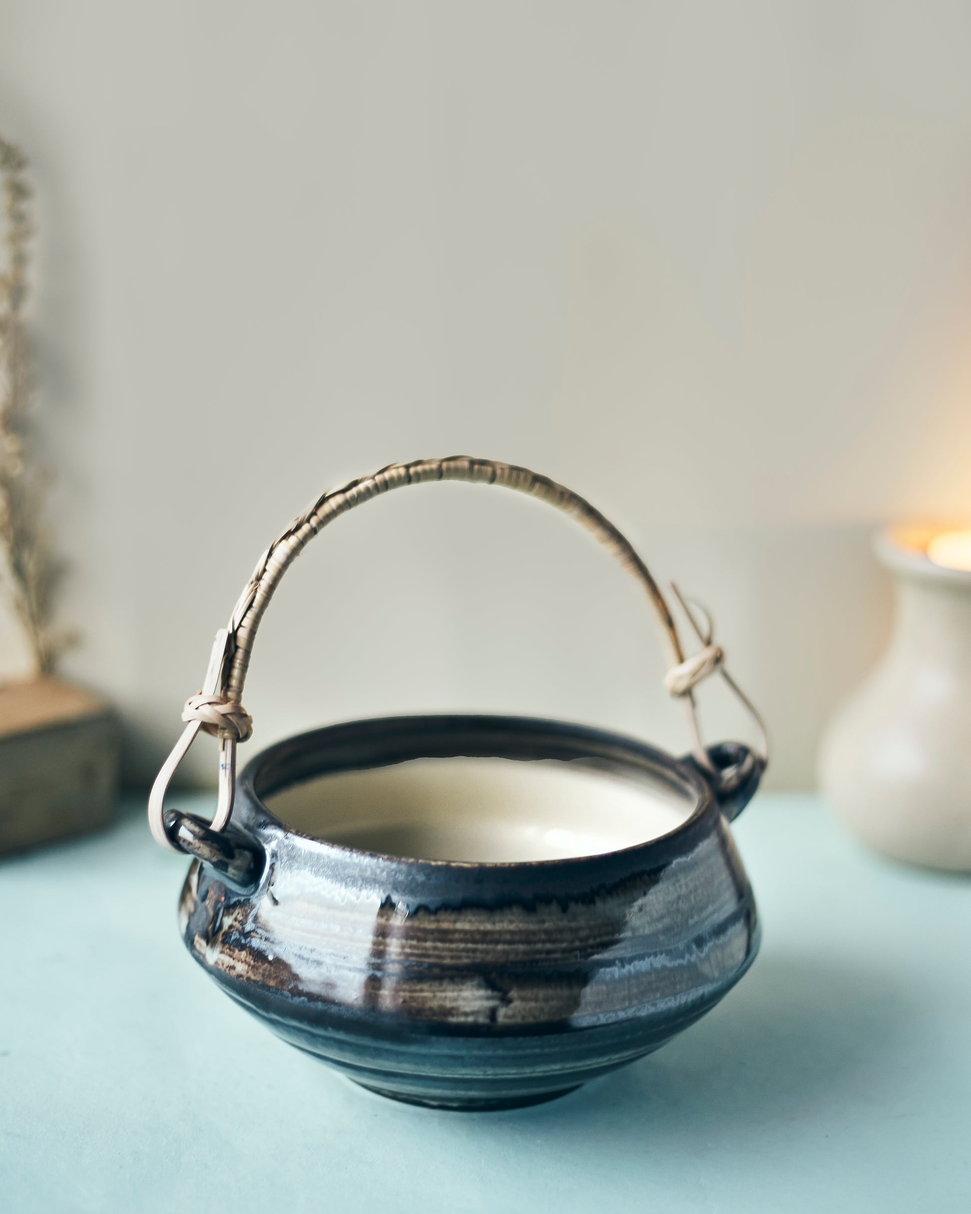 Ceramic Basket with Wooden Handle – Rustic Charm
