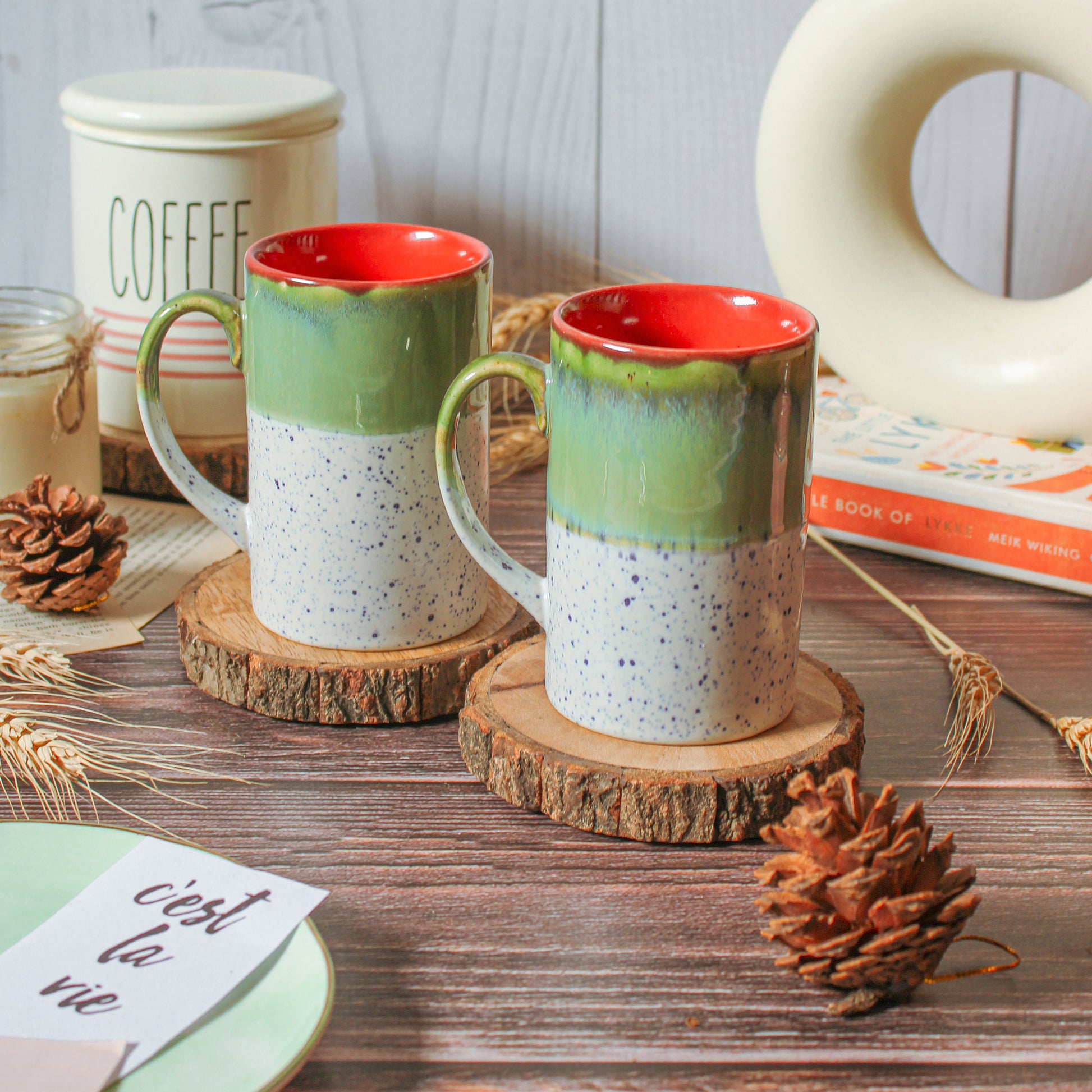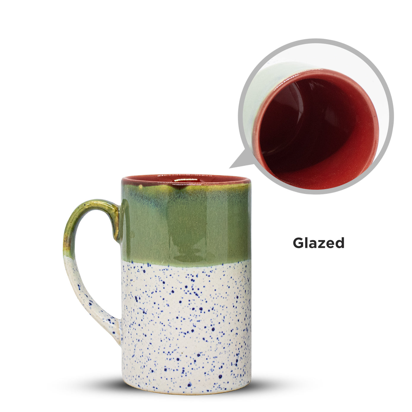 This product is purely hand-painted and handcrafted, which will be irregular in the form of nature as there is human involvement in normal procedure. Inspired by the colors in Nature, we bring to you our hand glazed coffee mugs. Triple fired by our artisans to ensure strong products that last.