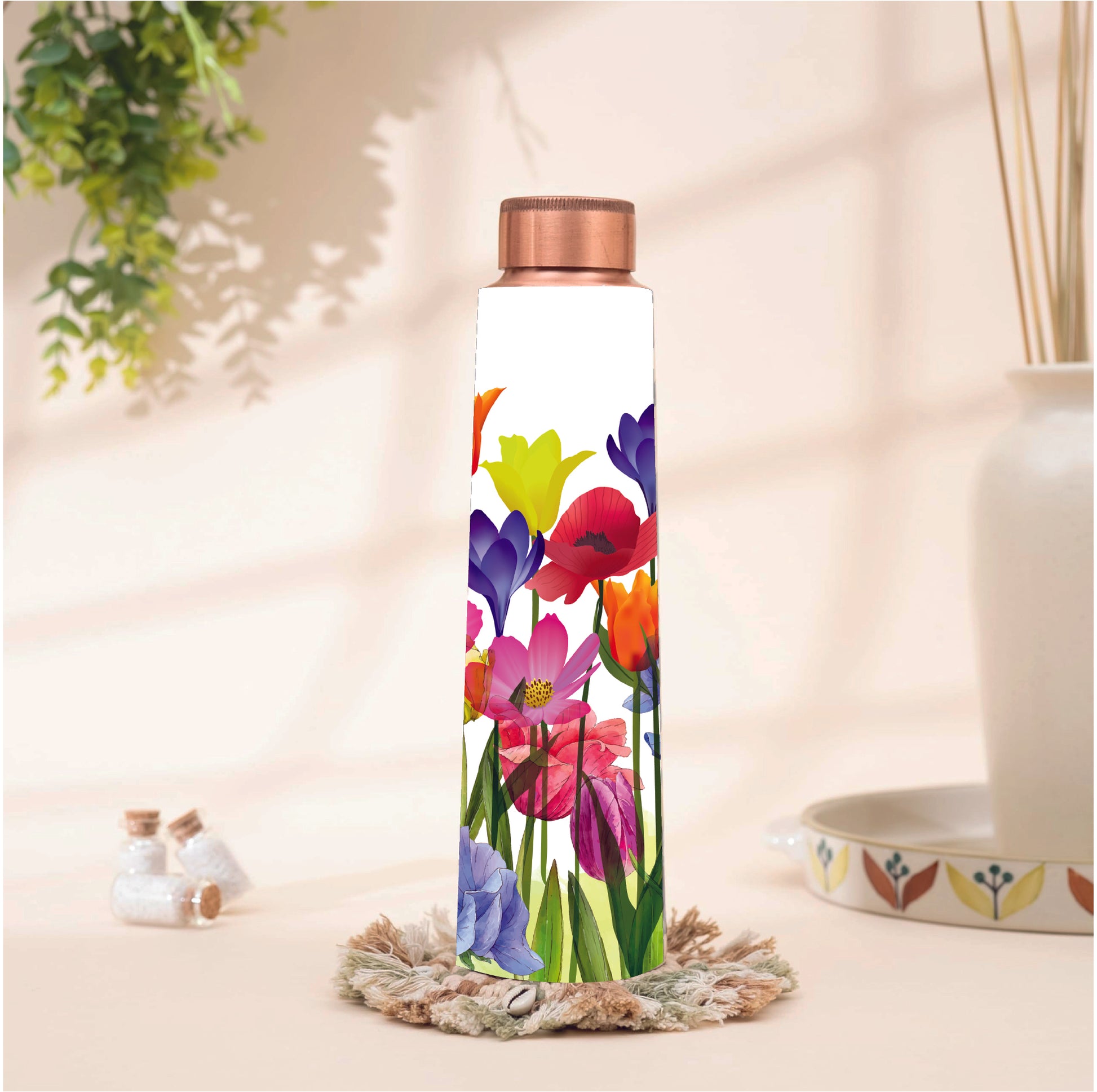 Floral Printed Copper Water Bottle 1L - BPA Free