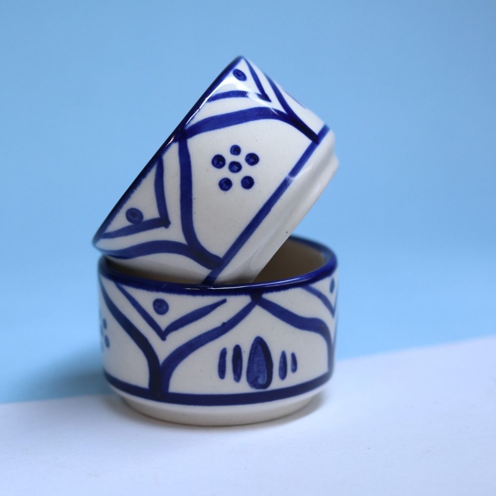 These handcrafted terracotta dip bowls pay homage to India’s rich heritage. Each bowl is meticulously shaped and adorned with intricate patterns. Imagine holding one—the cool touch of clay, the vibrant blue hues—it’s more than a bowl; it’s a piece of cultural legacy.