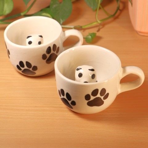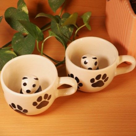 Handcrafted Ceramic 3 D panda Tea Cup Set of 2