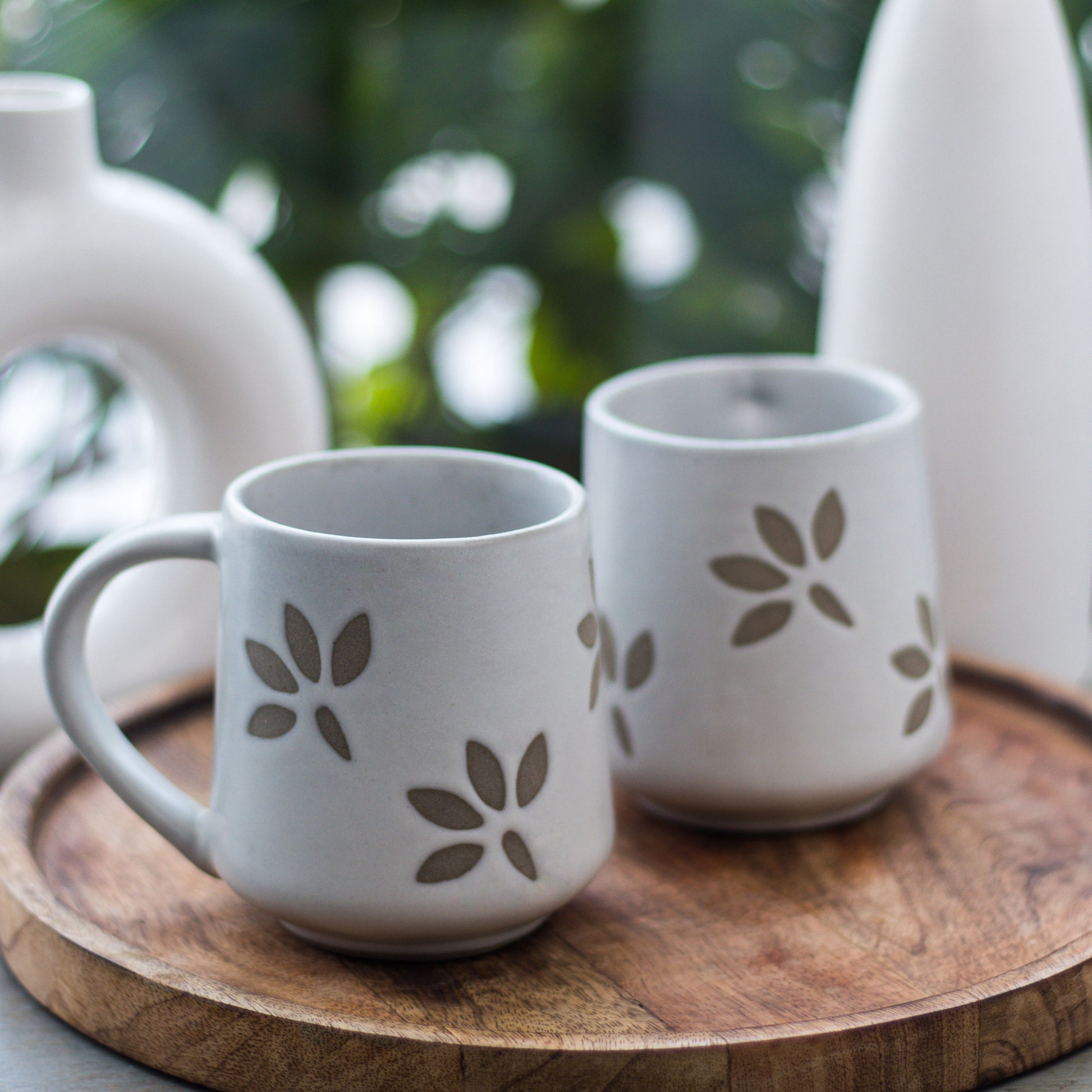 Handcrafted Ceramic Mugs with Floral Cutout, Set of 2