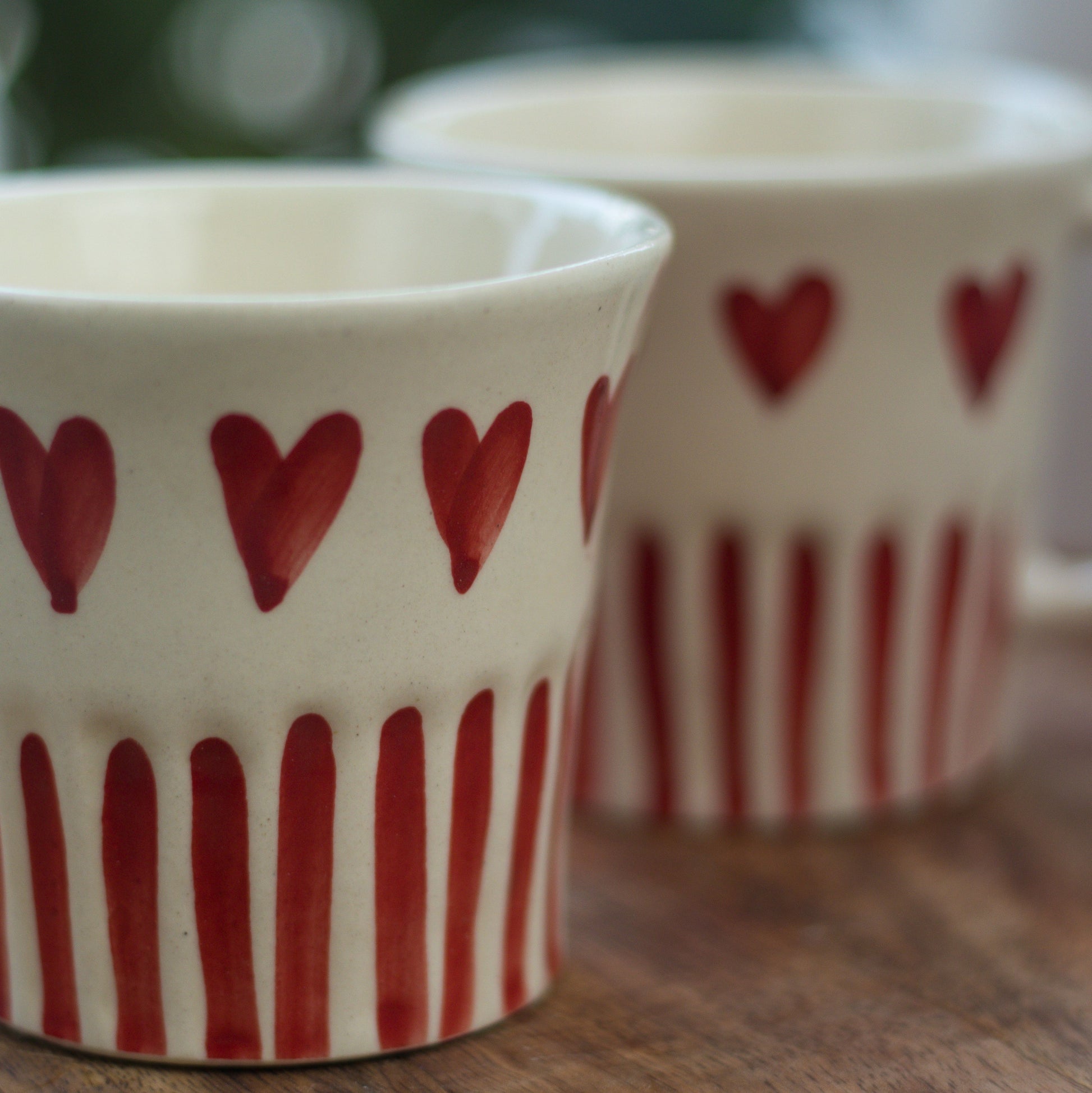 Handcrafted Ceramic Mugs with Red Heart Design, Set of 1