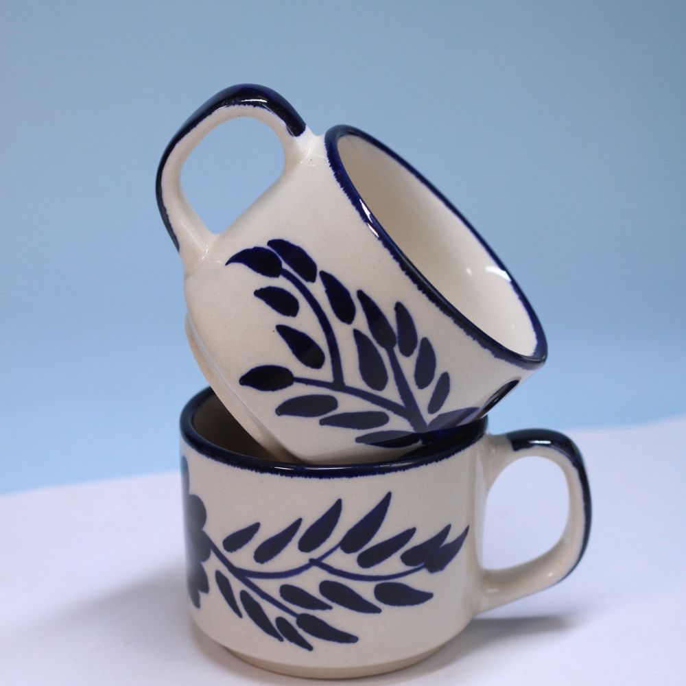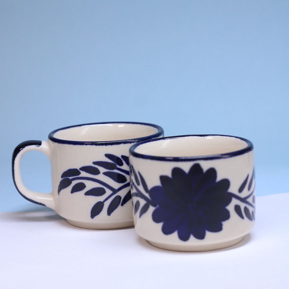 Handcrafted Ceramic Tea Cup Set of -2 Blue Floral Design