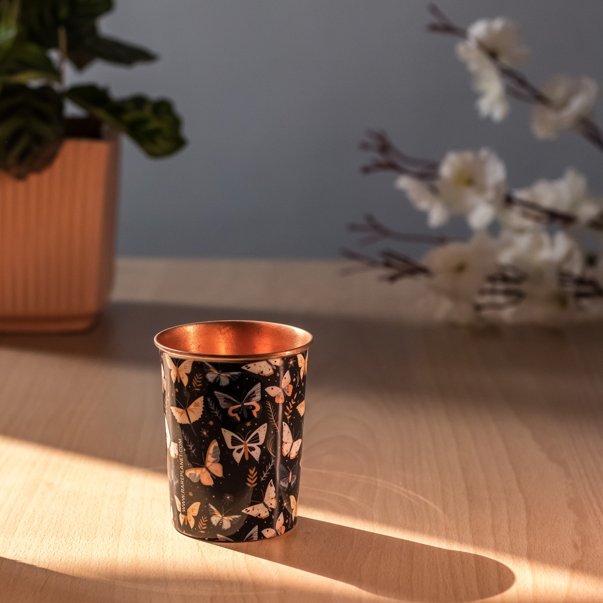 Handcrafted Copper Glass with Butterfly Design Set of 1