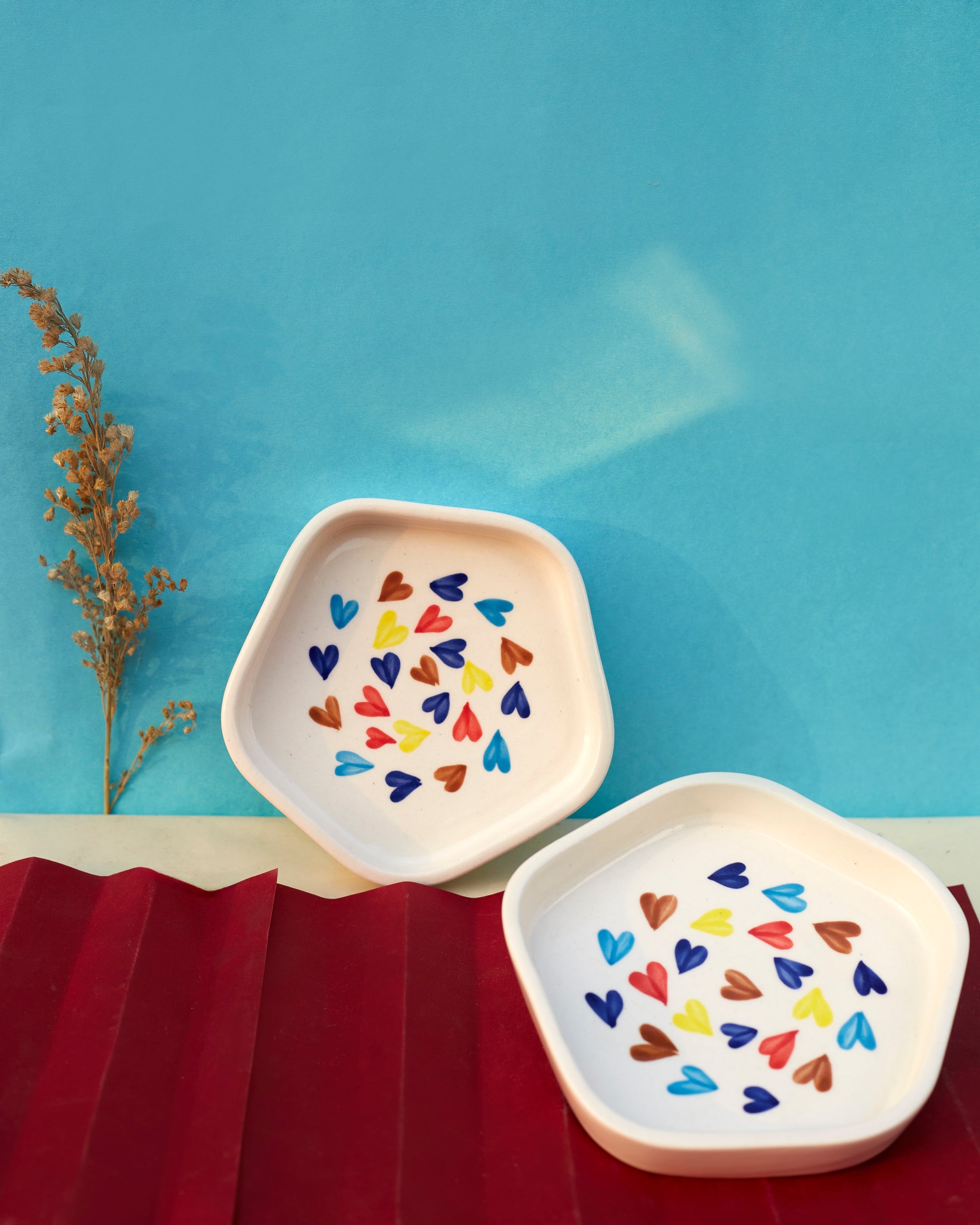 Heartfelt Elegance: Set of 2 Ceramic Heart-Painted Small Plates