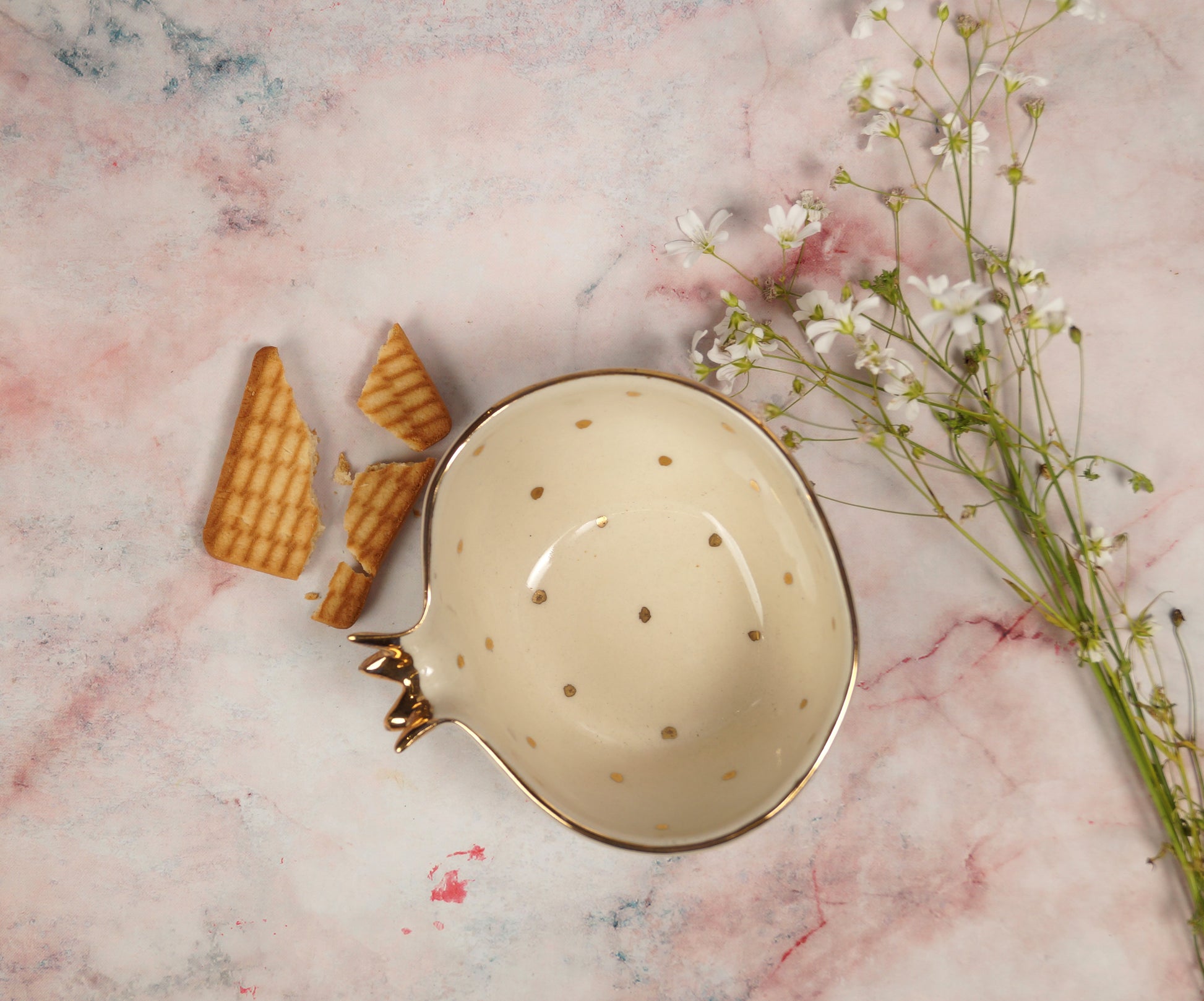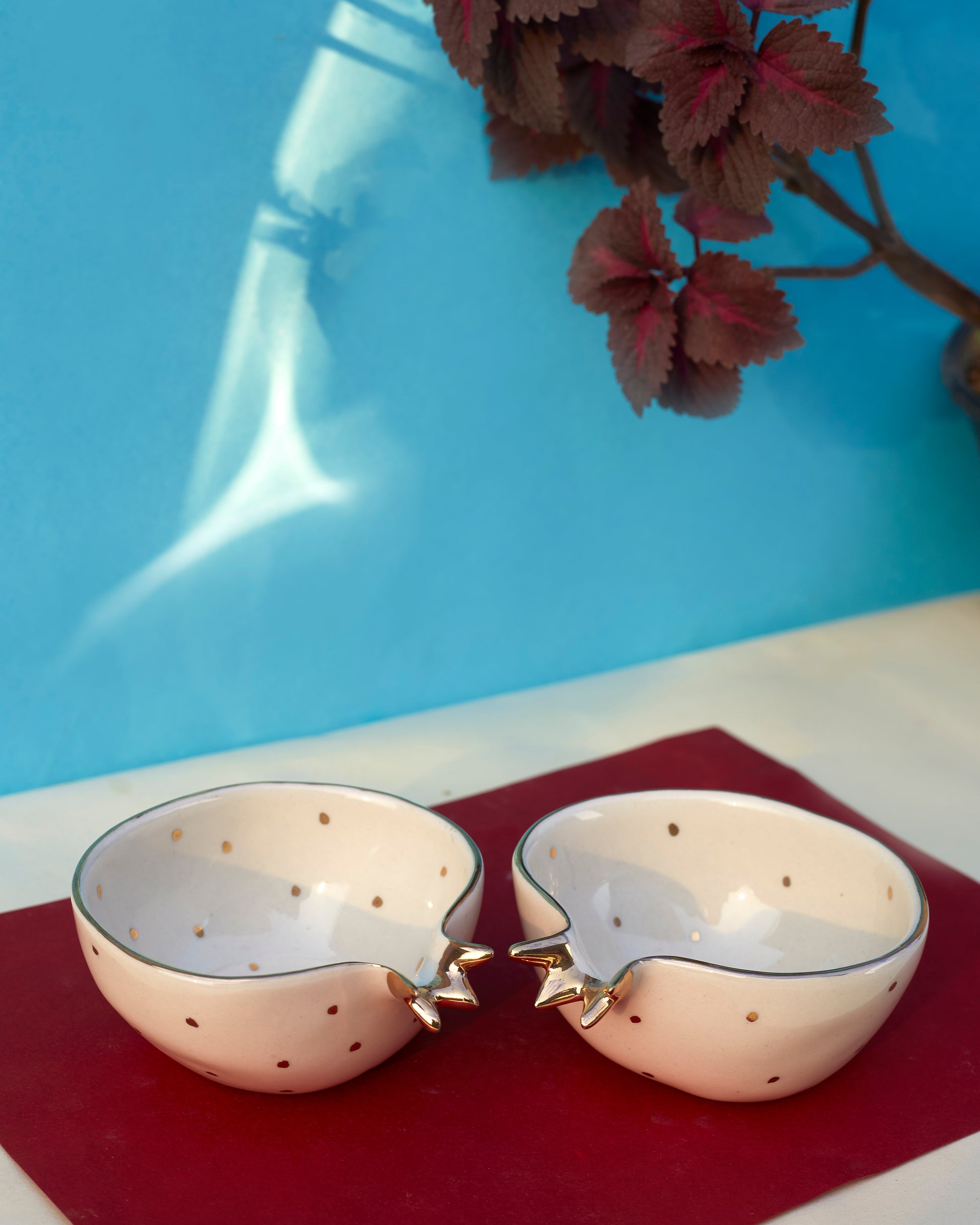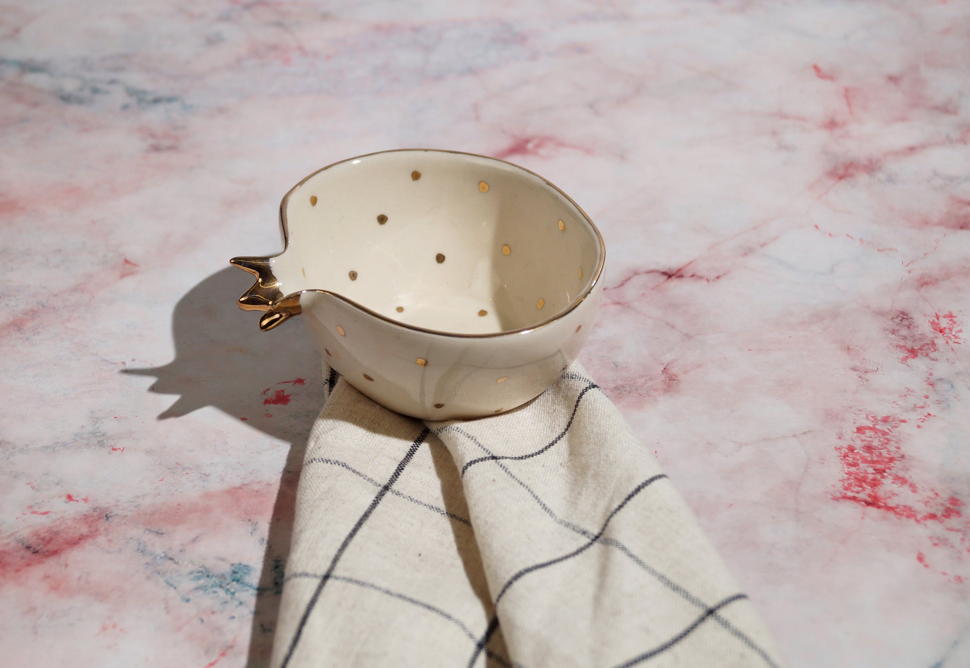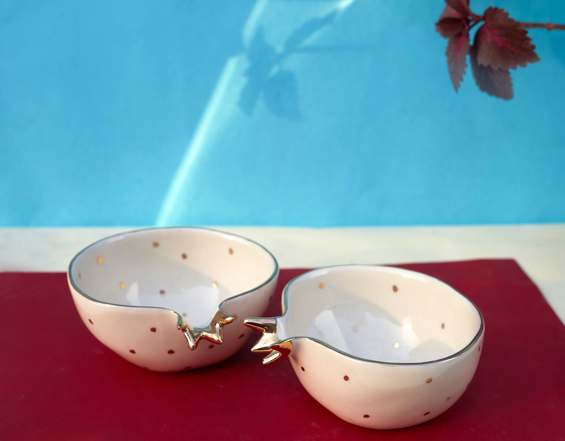 Indulge in the pure elegance of our 'Pure Elegance' set featuring White Pomegranate-Shaped Bowls. Crafted with sophistication and a unique design, these bowls add a touch of charm to your table. The pristine white hue enhances the purity of the pomegranate shape, making them both functional and decorative. Ideal for serving salads or snacks, these bowls elevate your dining experience with a fusion of style and practicality. Transform any meal into a refined affair with the distinctive allure of 'Pure Elegance,' where each bowl embodies a perfect blend of sophistication and timeless design.