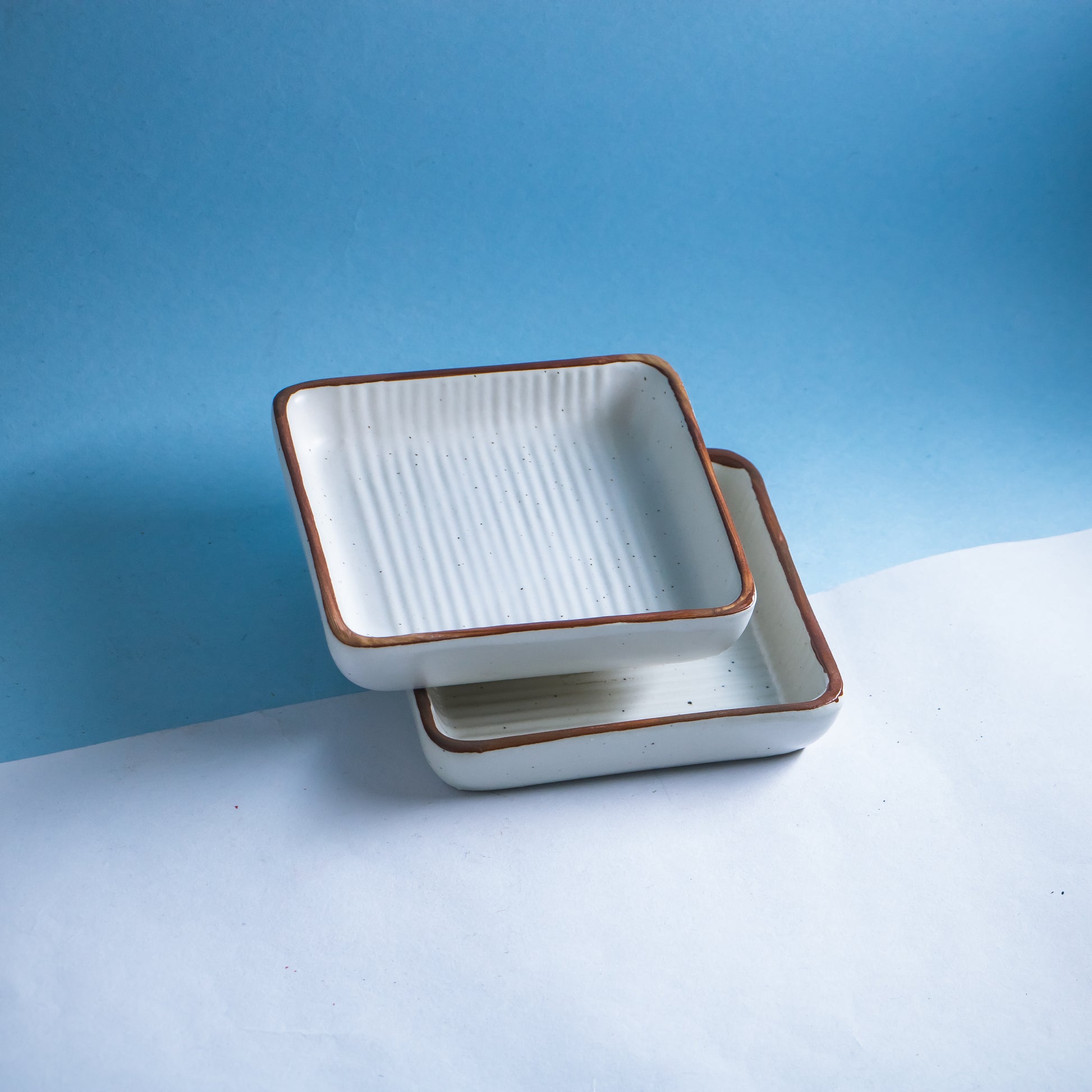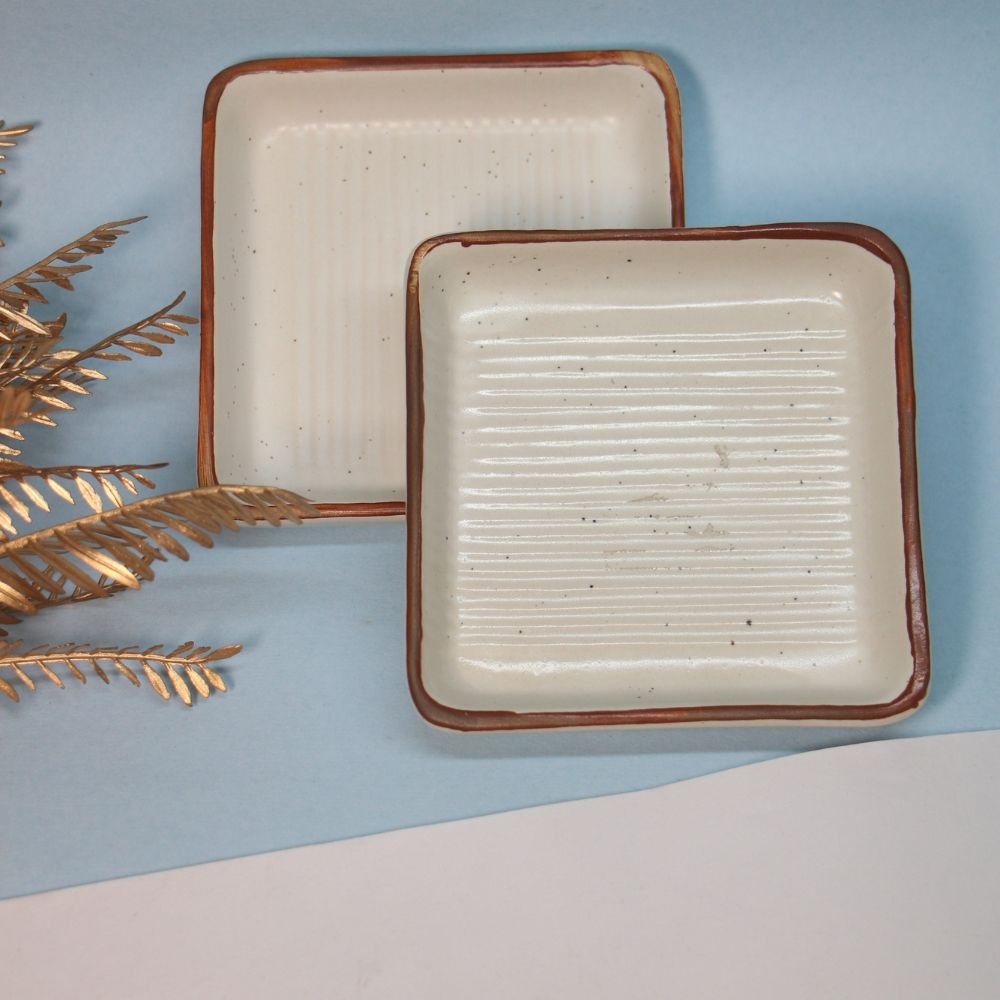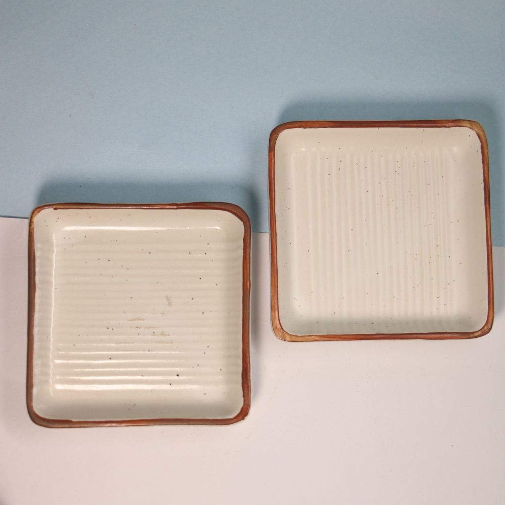 Rustic Handcrafted Square Ceramic Plates - 2 Piece Set
