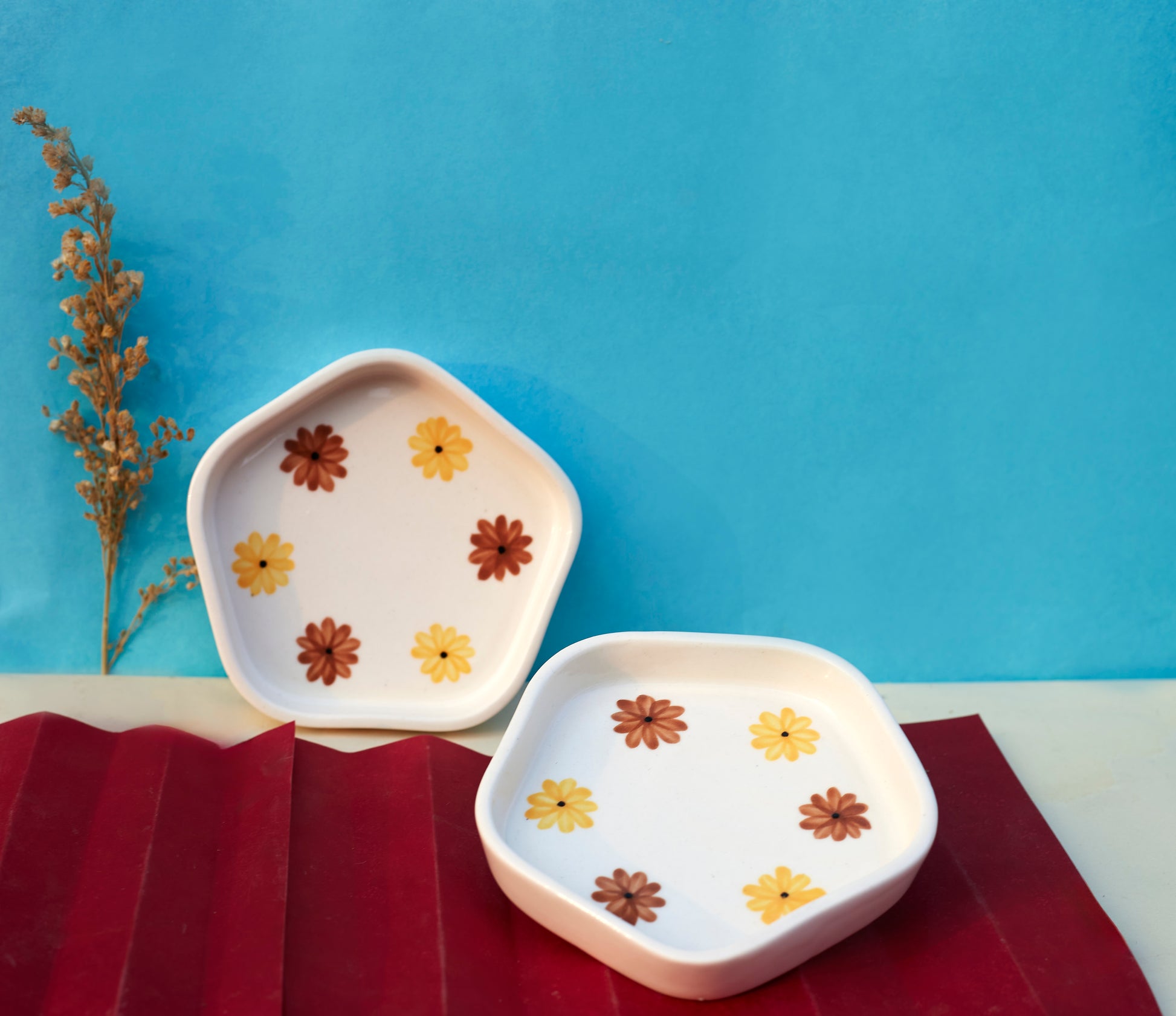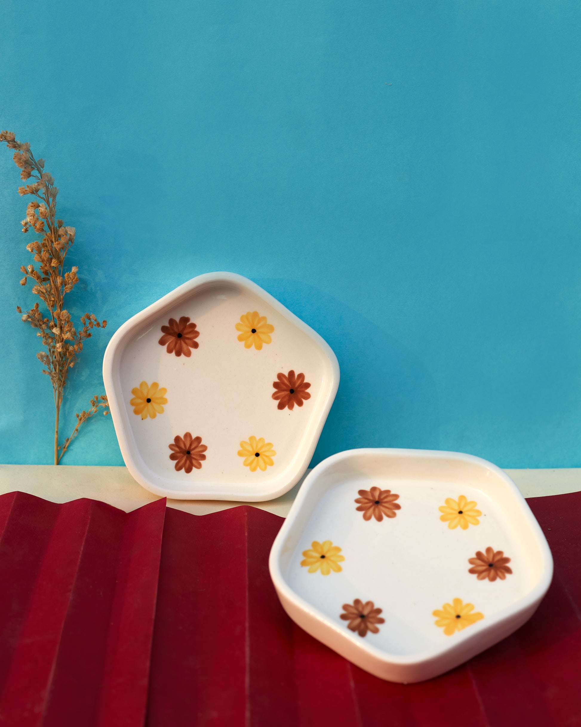 Bring the warmth of sunshine to your table with our Sunny Blooms set of 2 Sunflower-Painted Small Plates. Adorned with vibrant sunflower motifs, these plates add a touch of nature's beauty to your dining experience. Crafted with precision and style, these small plates are perfect for serving appetizers, desserts, or delightful treats. The sunflower-inspired design creates a cheerful ambiance, making every meal a celebration. Elevate your table setting with the radiant charm of these plates and infuse your dining moments with the joy of blooming sunflowers. Share the sunshine and savor the beauty of each bite.