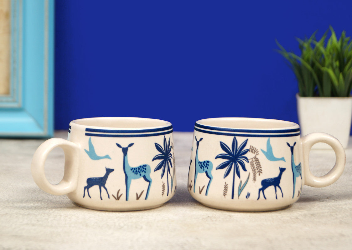 Wild Blue Brew: Animal-Printed Tea Cups (Set of 2)