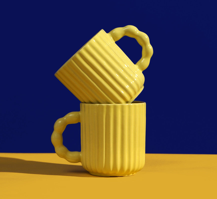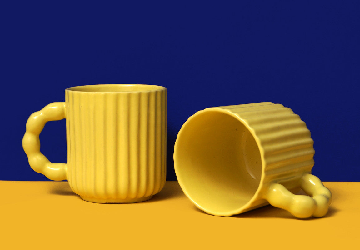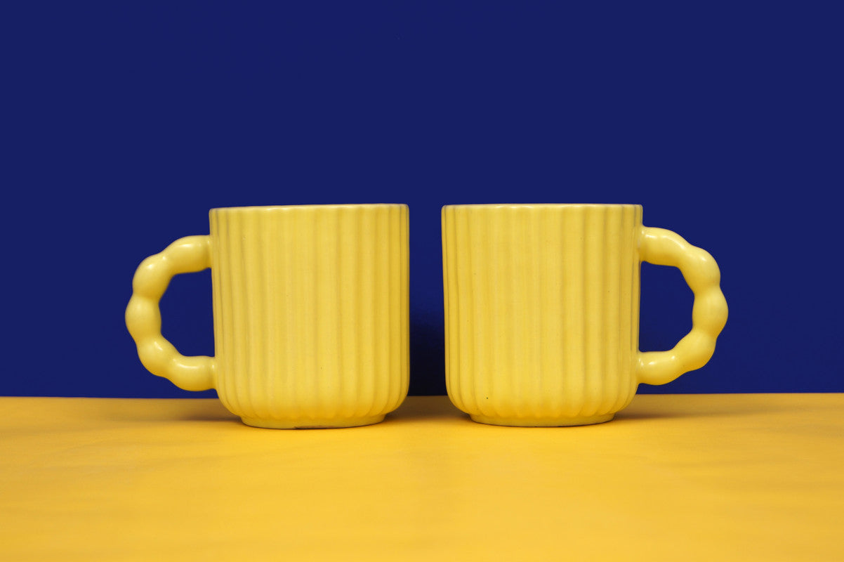 Yellow Oasis: Ceramic Coffee Mug Duo for Two (Set of 2)